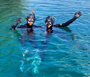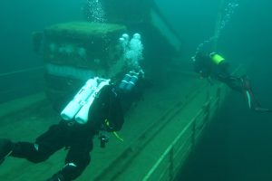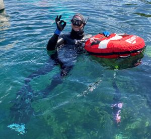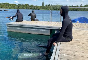 Trotz der langen Anfahrt am Donnerstag, haben weder die Gerätetaucher noch die Freitaucher auf die ersten Tauchgänge verzichten wollen, und sind bei dem sehr schönen Wetter direkt in den See gegangen. Gerade an diesem Anreisetag hat sich das Tauchen gelohnt, da nur wenige Taucher sich im See befanden und somit die für uns Sicht extrem gut war.