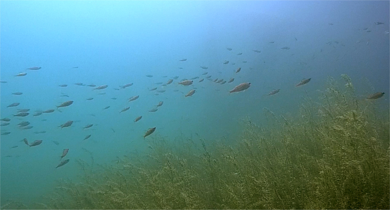 Nach ca. 45 Minuten habe wir auf der anderen Seite des Sees eine kleine Pause am Ufer gemacht und haben uns die Sonne „auf den Pelz“ scheinen lassen. Danach gab es eine Seequerung bevor wir uns der Seite links von unserem Steg gewidmet haben. Hier gab es allerdings keine Unterwasserbewohner zu sehen.