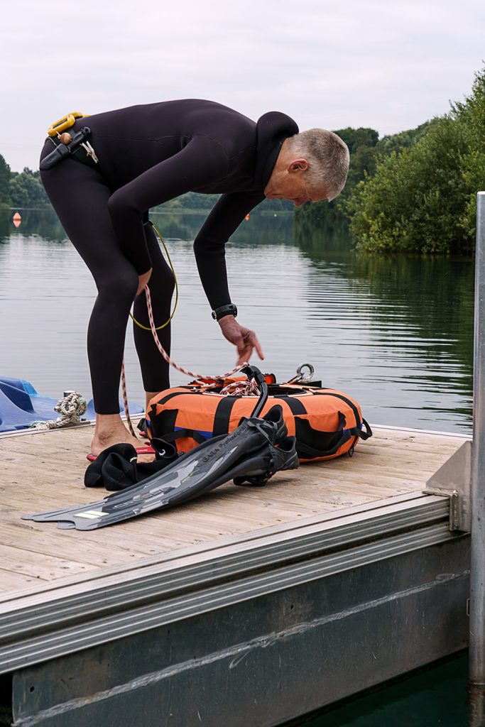 Typisch Apnoisten ging diese Fraktion dann entspannt am Freitag früh ins Wasser. Schon um 7:30 Uhr – natürlich vor dem Frühstück! – versammelten sich die Luftanhalter*innen am Steg und hatten den See für sich allein – was für ein Luxus.