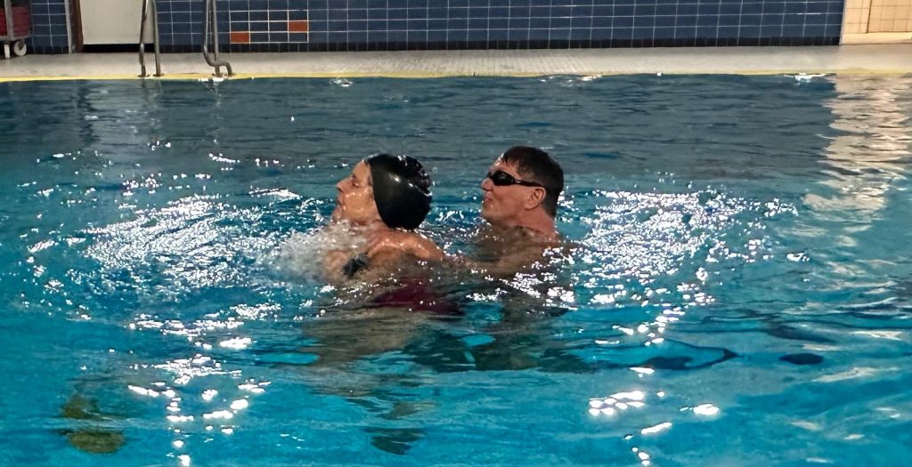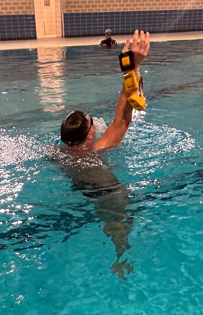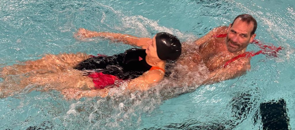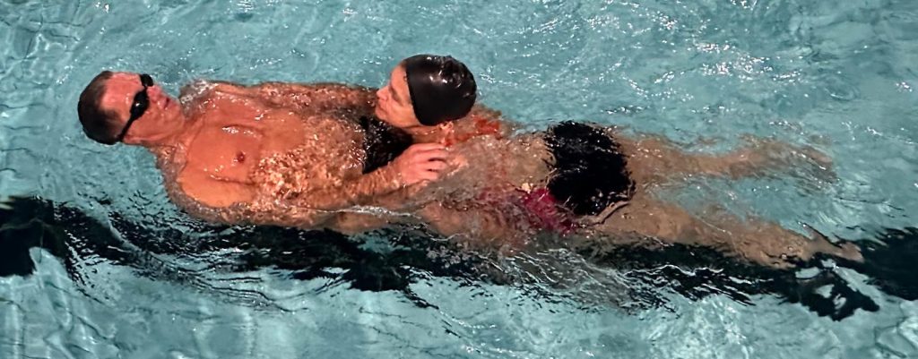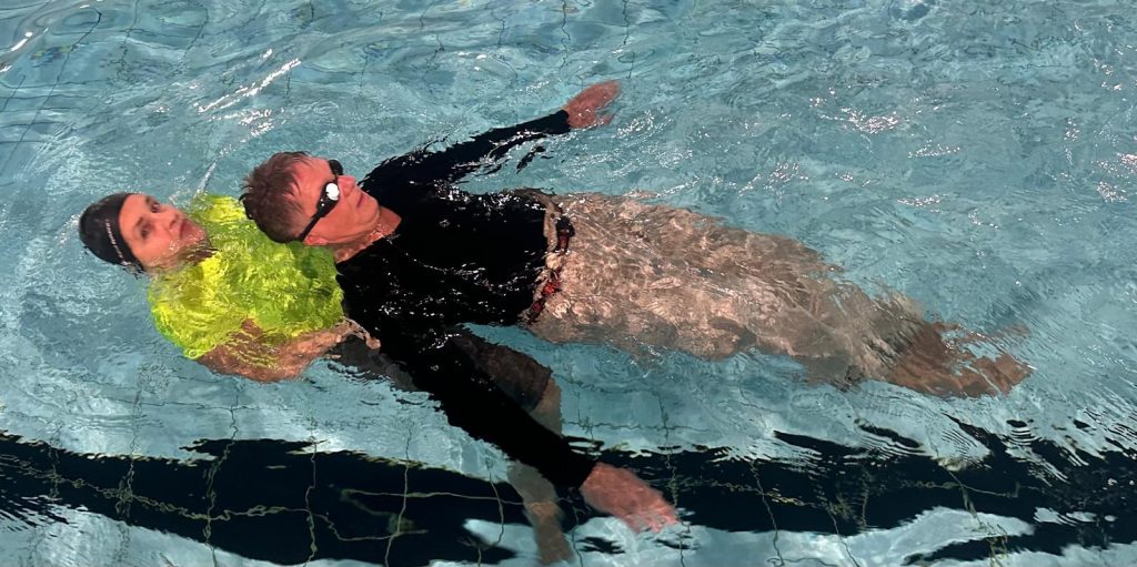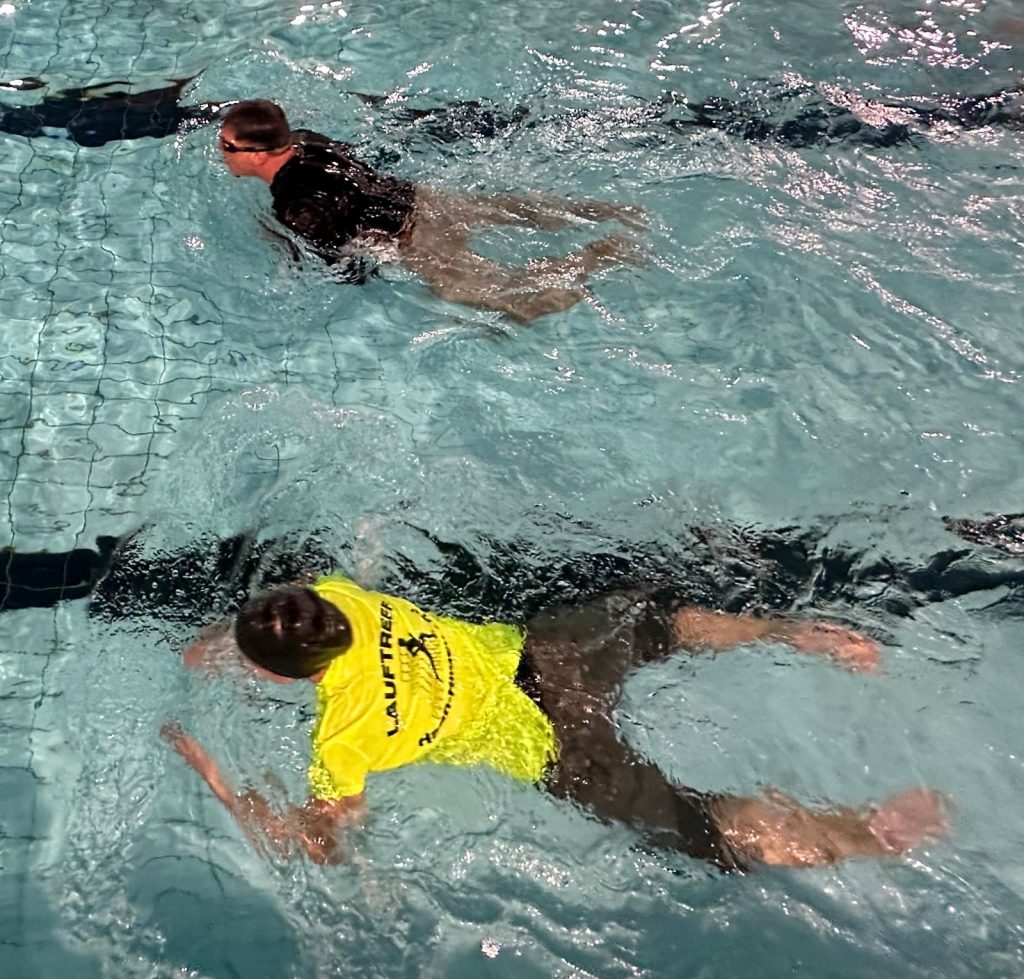 50 m Transportschwimmen: Schieben oder Ziehen in höchstens 1:30 Minuten