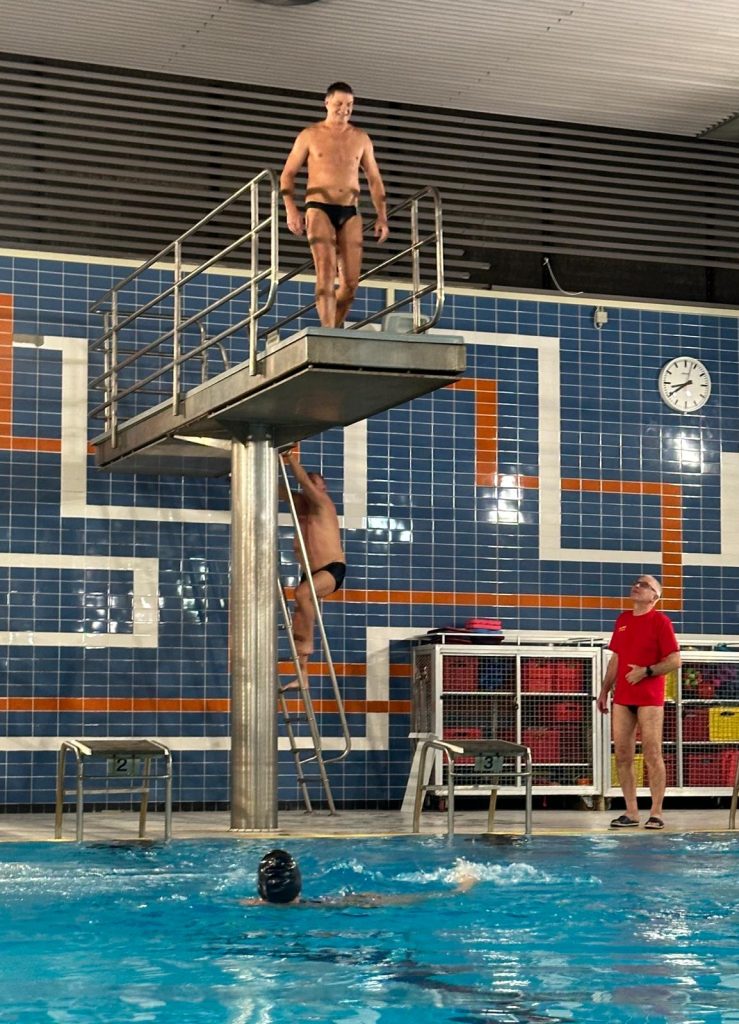 Dreimal Tieftauchen von der Wasseroberfläche, zweimal kopfwärts und einmal fußwärts innerhalb von 3 Minuten, mit dreimaligem Heraufholen eines 5 kg Tauchrings oder eines gleichartigen Gegenstandes (Wassertiefe zwischen 3 und 5 m)