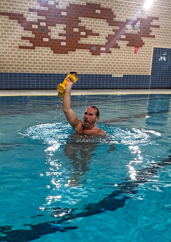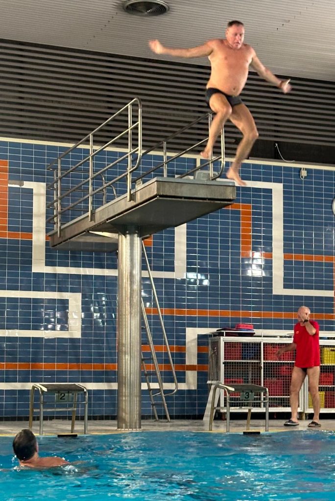 300 m Schwimmen in Kleidung in höchstens 12 Minuten, anschließend im Wasser entkleiden