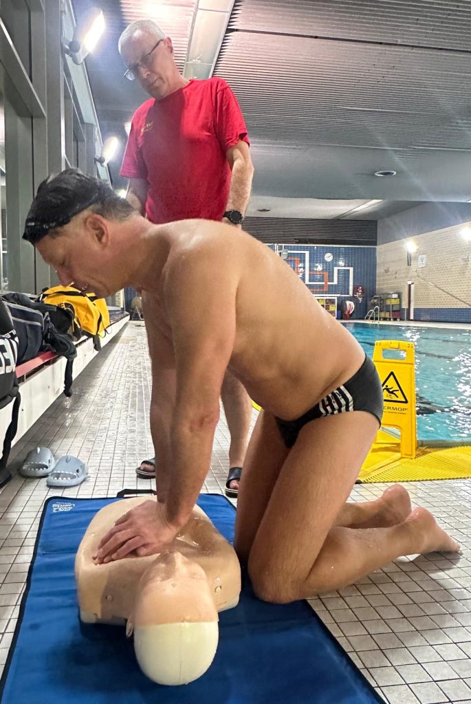 Bei uns im Tauch–Cub Leverkusen e.V. werden diese Anforderungen seitens unseres Vereinsmitglieds Jörg Thal, seines Zeichens „DLRG Lehrscheininhaber“ turnusmäßig alle zwei Jahre für die TrainerInnen abgenommen.