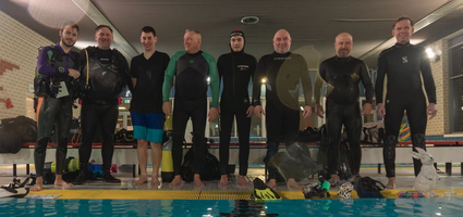 Und wieder gab es ein Gerätetraining in unserem Hallenbad mit diesmal 9 vollausgerüsteten „Unterwasseratmern“.