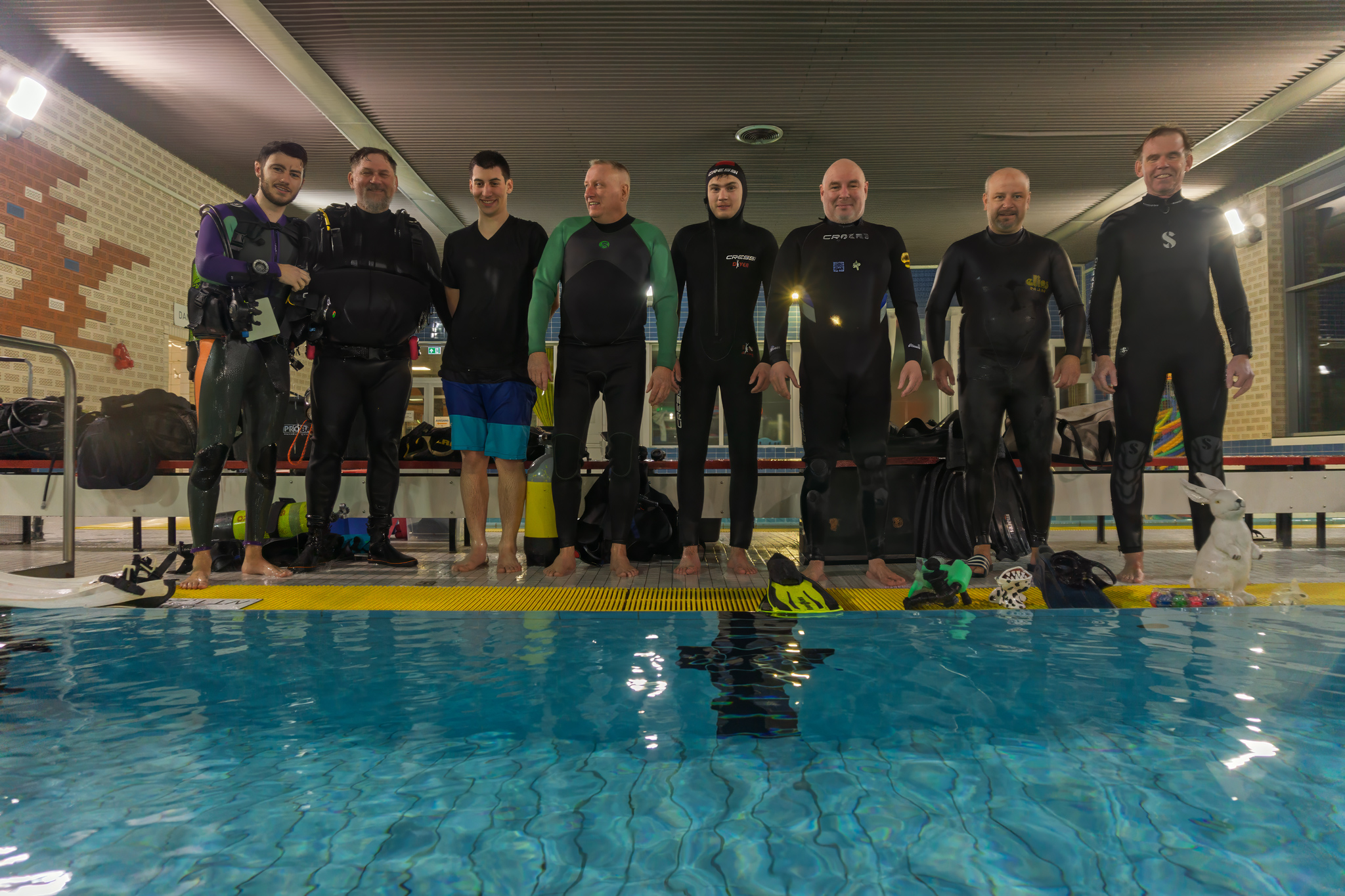 Und wieder gab es ein Gerätetraining in unserem Hallenbad mit diesmal 9 vollausgerüsteten „Unterwasseratmern“.