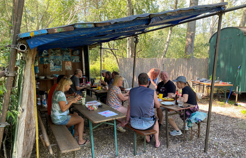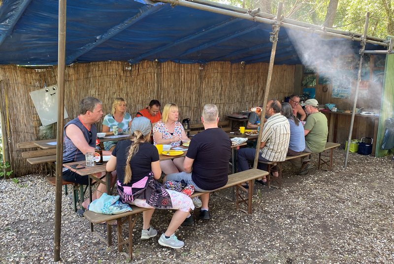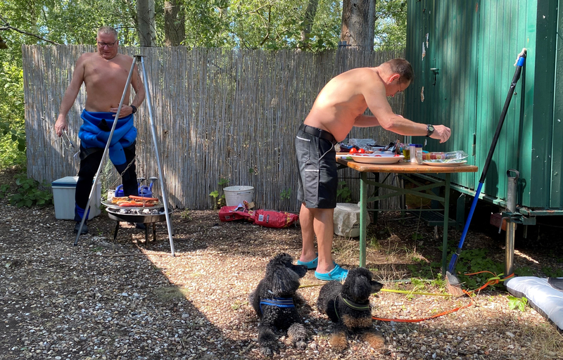 Neben dem Genießen der Unterwasserwelt gab es selbstverständlich auch reichlichen Genuss für den Gaumen. Unser „Grillmeister“ Torsten hat sich um die warme Küche gekümmert und alle anderen haben ihre Köstlichkeiten auf den Tischen unter dem Unterstand zur allgemeinen Verfügung aufgebaut. An Getränken der unterschiedlichsten Art hat es natürlich auch nicht gemangelt